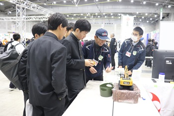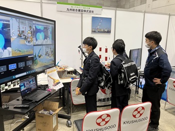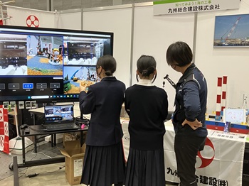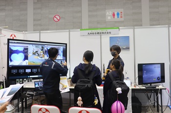 今回で4回目の出展となったブースでは、海の工事を知ってもらおうと、実際に使用している水中ドローンの操作体験をはじめ、